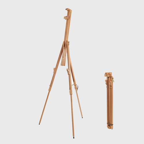 Three fully adjustable tripod legs provide a level working platform on uneven ground. It supports canvases or drawing boards up to 45 inches (115 cm) high and folds compactly for easy transport.