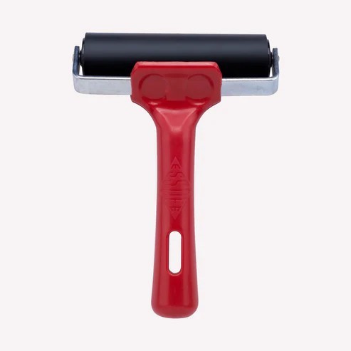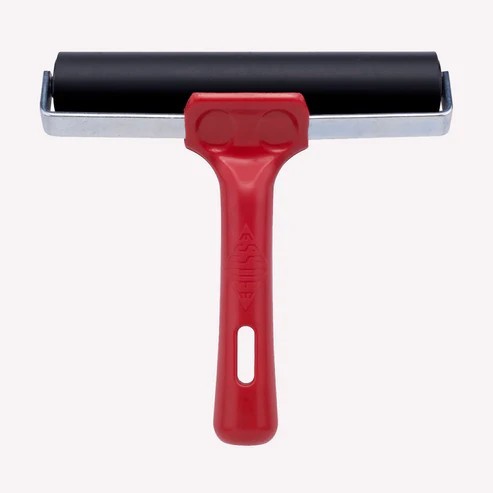 The Essdee Ink Roller is a strong, sturdy and versatile hard-rubber ink roller ideal for printmaking. Features a perfect 70 shore EPDM rubber roller, with an aluminium core, self-lubricating nylon bearings, a continuous steel shaft and rigid steel brackets making this a tough and dependable tool. Can be used with both water and oil-based inks and is strong enough to be used for industrial purposes like the application of window films and vehicle graphics.