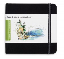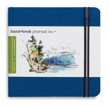 No Artist would be found with out a travelling sketch book. We carry Hand book journals, these are a very popular range of travel pads. Manufactured in India, the journals come with 128 pages of light buff, smooth acid free paper. Suitable for most sketching media the journals will support a light water colour or Gouache wash and are excellent for use with brush pens, fine liners and dip pens. The journals are secured with a strong elastic strap that keeps the journal bound when travelling around. There are five styles to choose from 8.25” x 5.5” either as a landscape or portrait format. 5.5” x 5.5” square and 5.5” x 3.5” landscape and portrait formats. Also included is a small plastic pouch in the rear cover for additional storage. The journals are available in four different fabric covers, Black, Cobalt blue, Scarlet and sap Green.